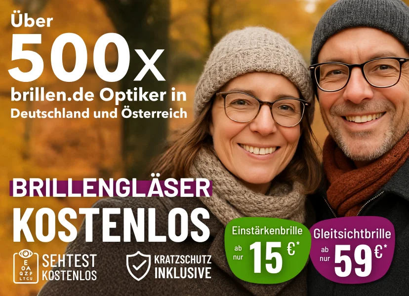 - Brillengläser gratis bei Kauf einer Fassung (schon ab nur 15 €)