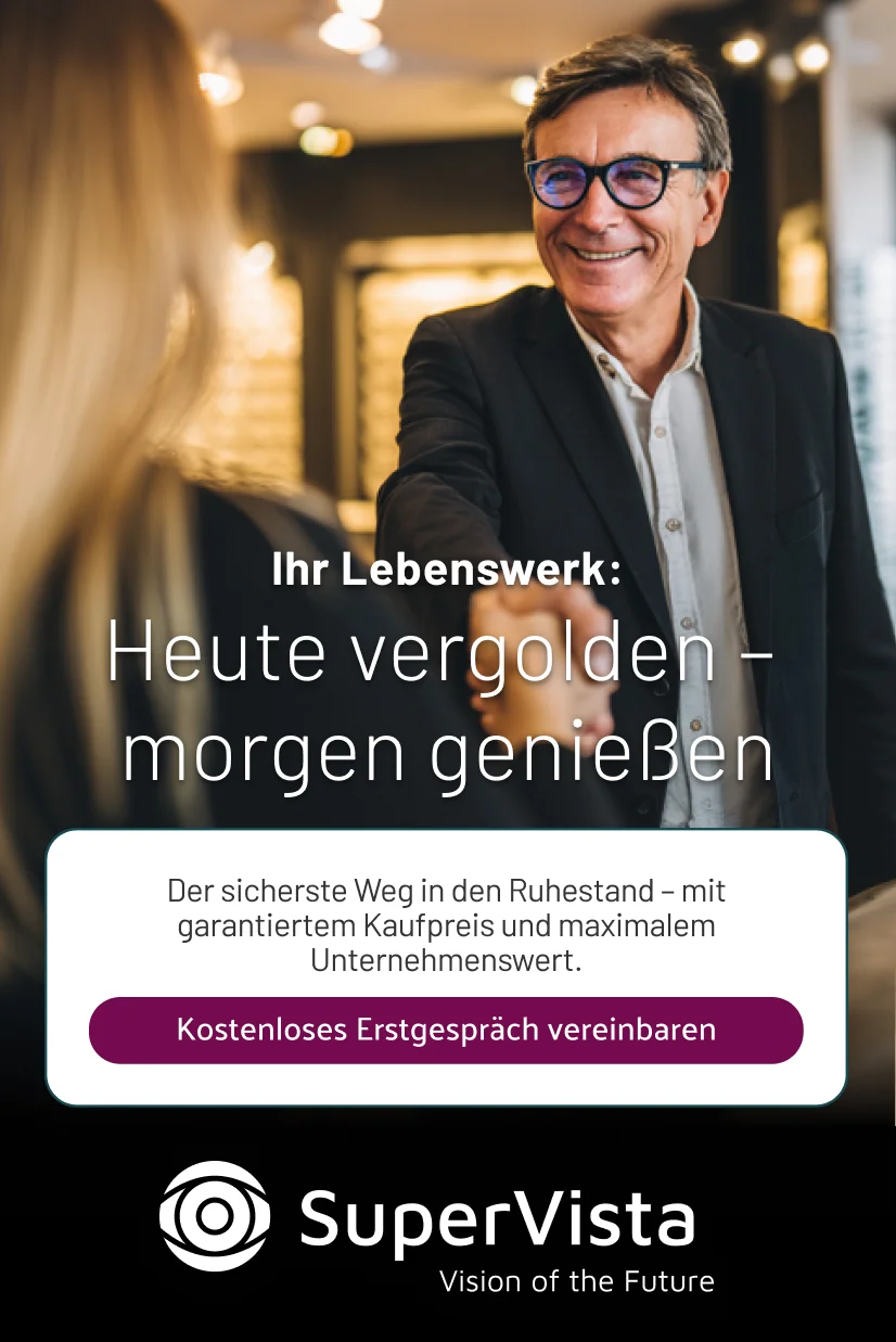 Für Optiker, die ihren Ruhestand strategisch und langfristig planen möchten, bietet SuperVista eine einzigartige Möglichkeit. Es geht nicht um einen sofortigen Ausstieg, sondern darum, über mehrere Jahre hinweg den Wert Ihres Lebenswerks gezielt zu steigern und sich einen sicheren und lukrativen Exit zu sichern.