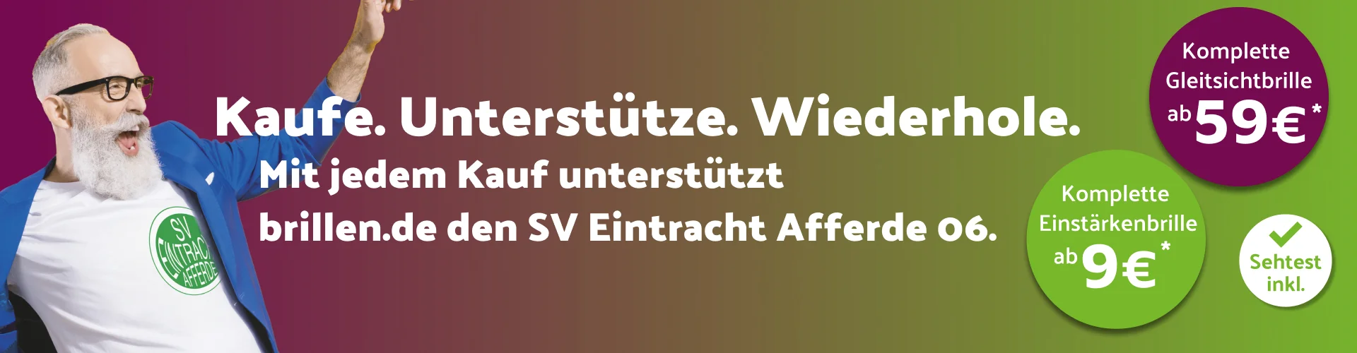 Mit Deinem Vereinscode sicherst Du Dir nicht nur 10% Extra-Rabatt auf alle aktuellen brillen.de Top-Deals, sondern auch eine finanzielle Unterstützung für Deinen Verein. Jeder Kauf mit Deinem Vereinscode führt zu einer Rückvergütung, die direkt Deinem Verein zu Gute kommt!